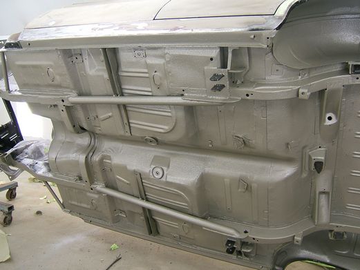added subframe connectors that I custom built plus a set of custom mounts I made for it. The under carriage was coated with bed liner, which was color matched to the original color. This