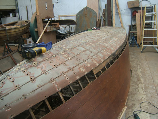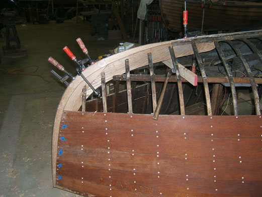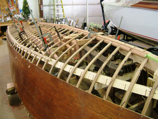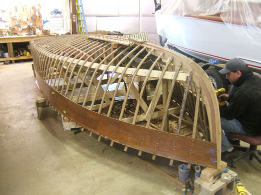 Minna K was purchased new by the current owner's Grandmother and is being fully restored. Thusfar, we have replaced all the ribs and are in the process of installing a new bottom. Most of