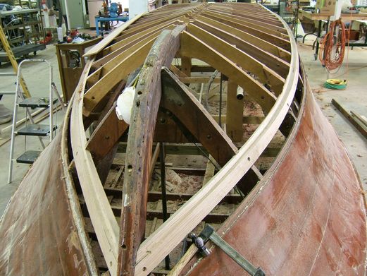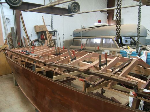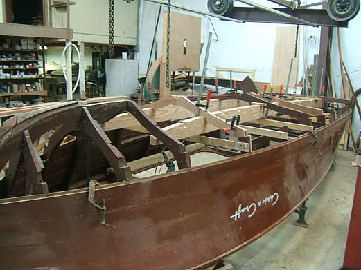 TGIF is a Chris Craft Riviera that has come to Wooden Boat Restoration for a new bottom. We have replaced all the frames, keel, chines keel,